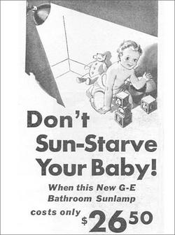 This ad was from 1930s... Kinda freaky actually as it kinda shows the baby is all trapped up in a dark room and that you should get a sun lamp for your baby... Thank God I live in a country where it is summer all year round...